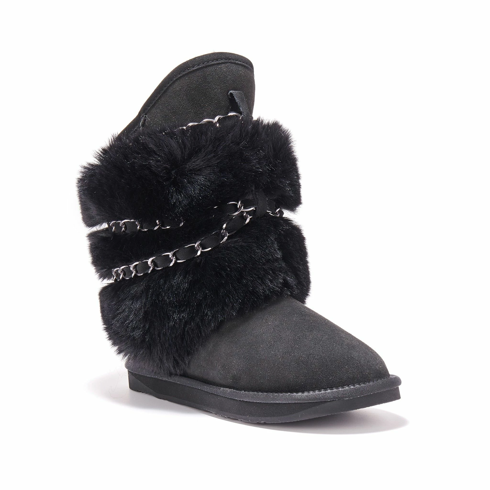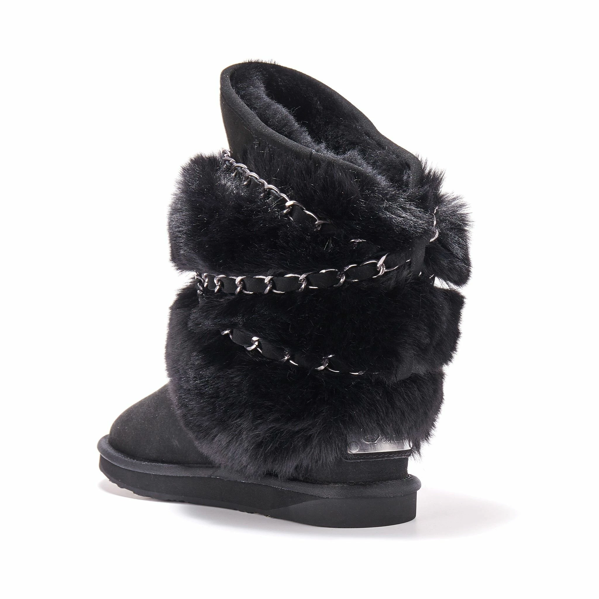 Calf length version of the best seller Atilla. Trademark Luxe faux fur wrapped in chains